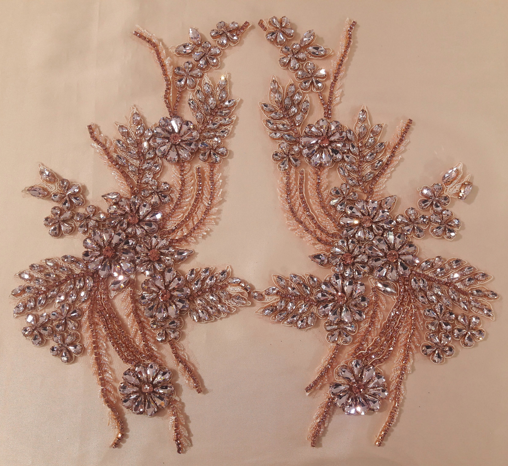 Аплікація, розшита камінням у легкому розовому кольорі. Використовується для декорування одягу. Продаються по парах.