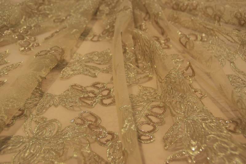Тонке Мереживо, розшити гладдю та паєтками. Продається на метраж.