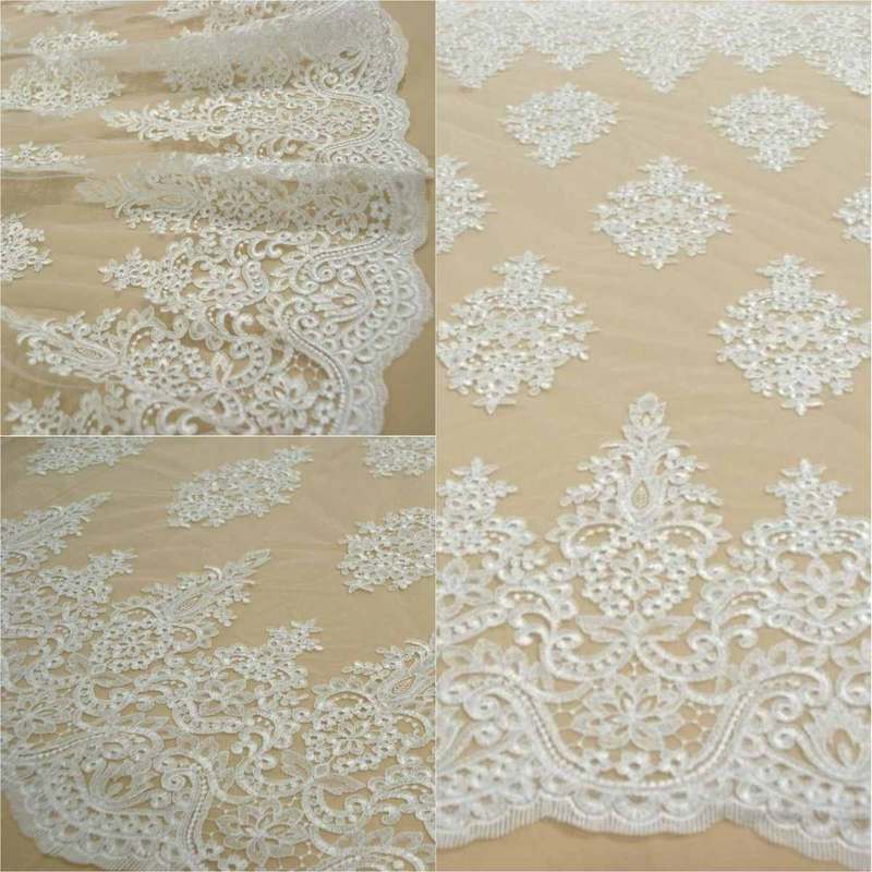 Тонке молочне Мереживо з квітковим візерунком. Продається на метраж.