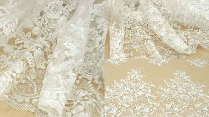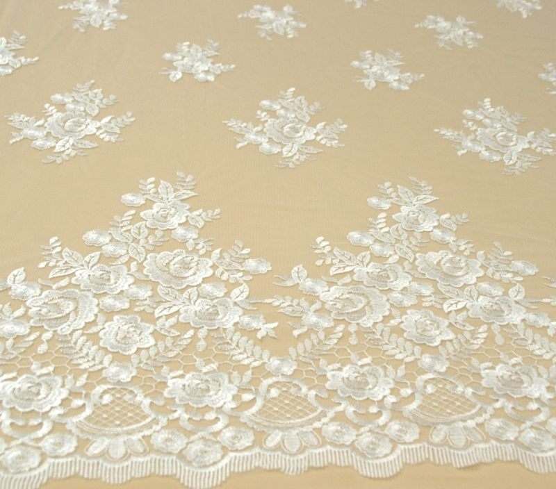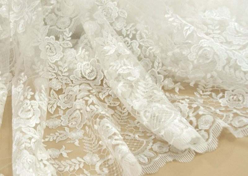 Нежно молочне Мереживо з квітковим візерунком. Ширина: 1,5м. Продається на метраж.