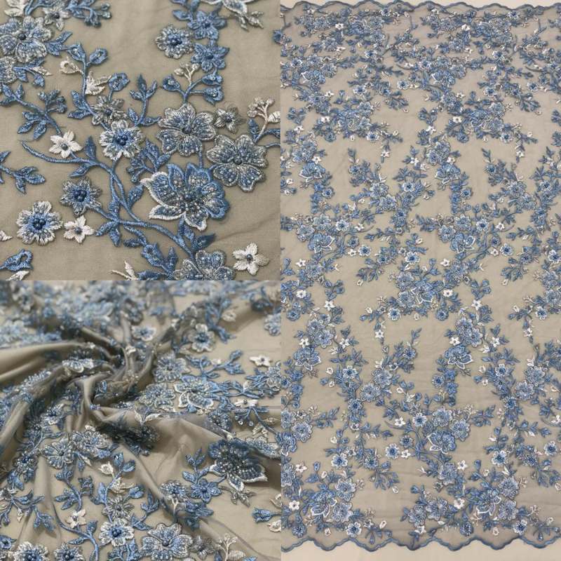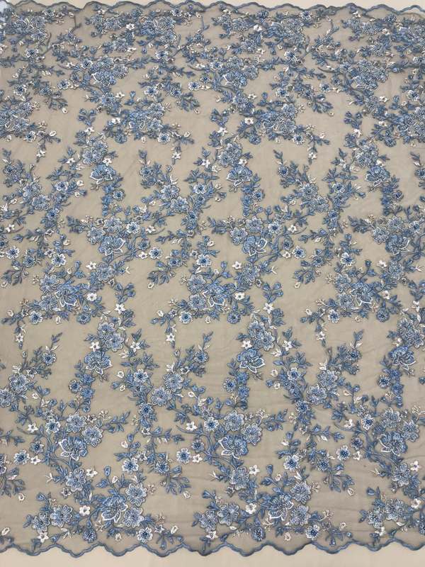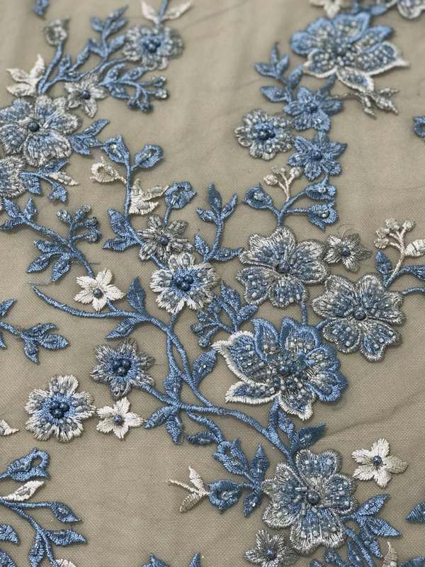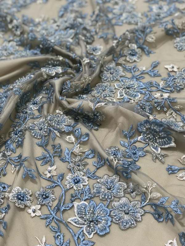 Тонке Мереживо з квітковим малюнком вишита гладдю, перлами, паєткою та бісером. Продається на метраж.