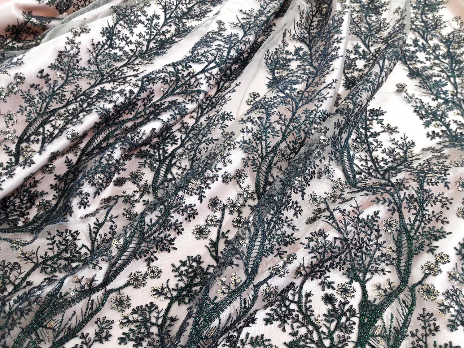 Тонке Мереживо вишита гладдю, люрексом та паєткою. Використовується для декорування та пошиття одягу. Продається на метраж.