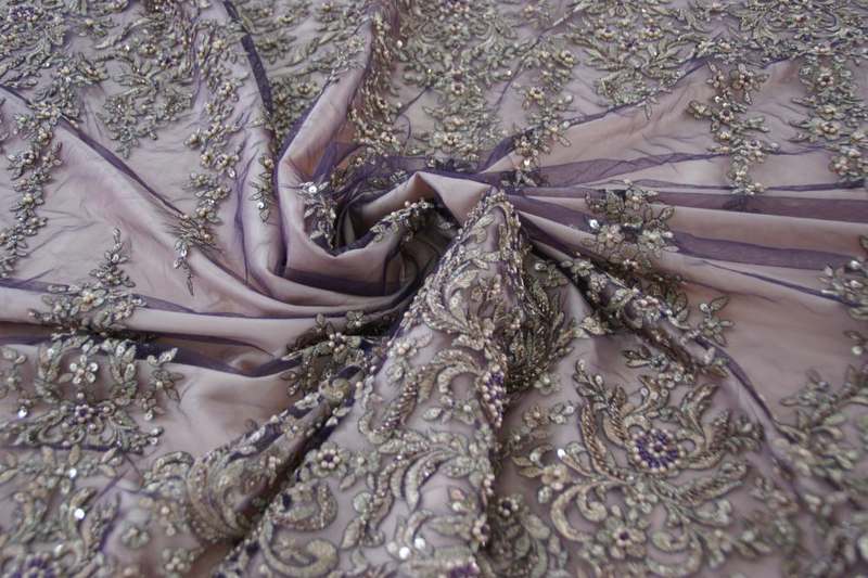 Тонке Мереживо, розшіть гладдю, Бісіром, паєткою, перлами. Продається на метраж.