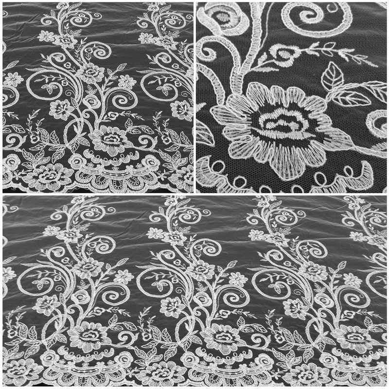Тонке біле Мереживо з квітковим візерунком, прикрашене сутажною ниткою. Продається на метраж.