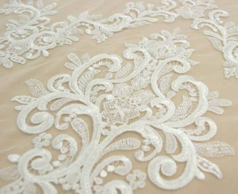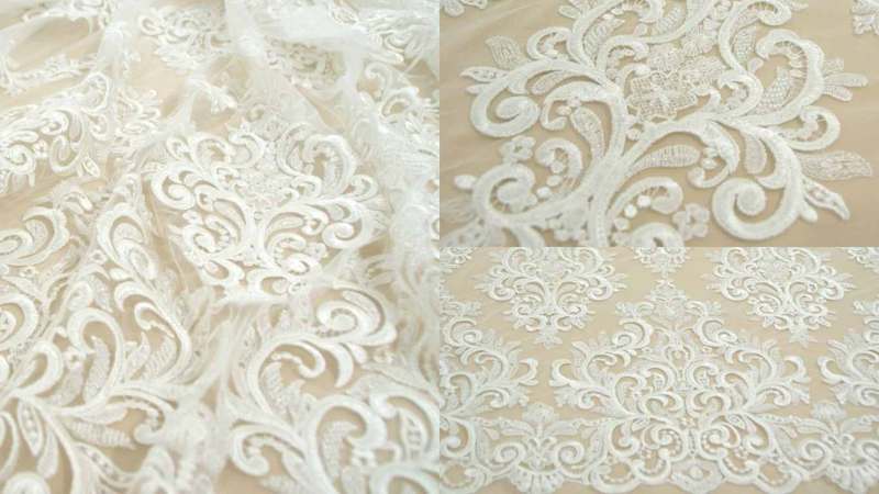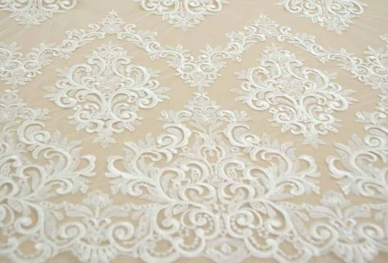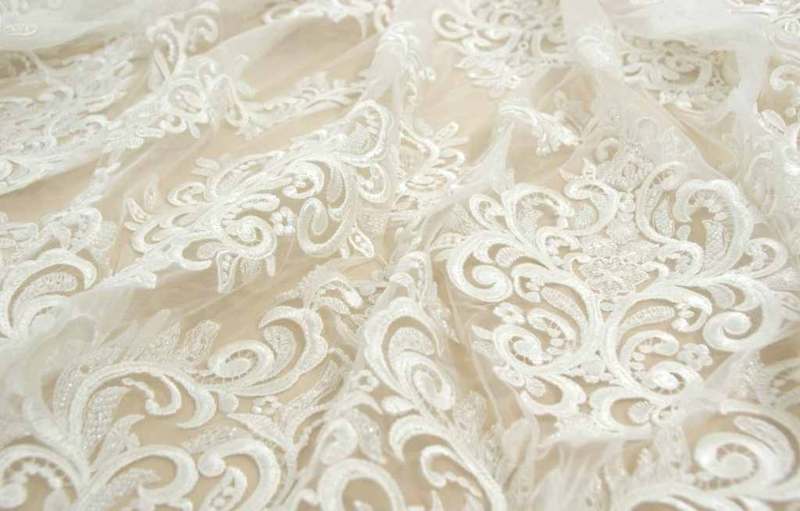 молочні Мереживо, розшитте Бісіром. Ширина: 1,5м. Продається на метраж.