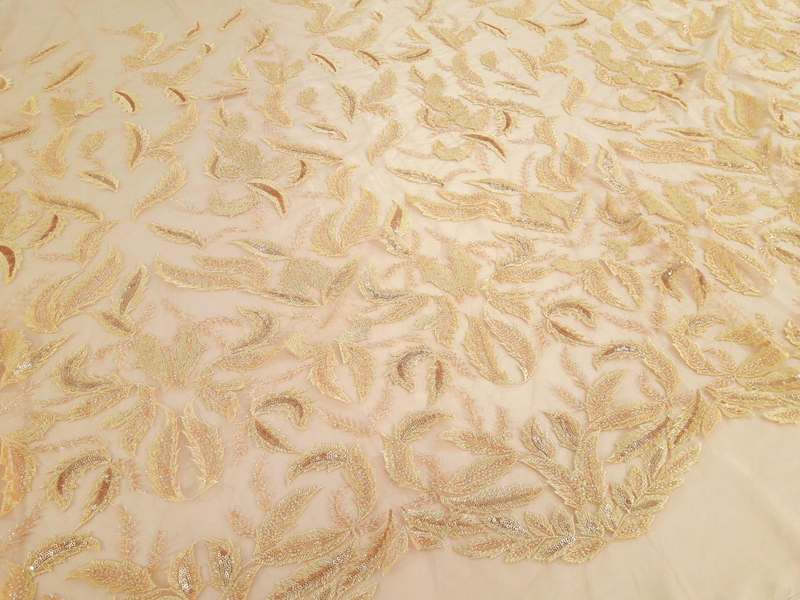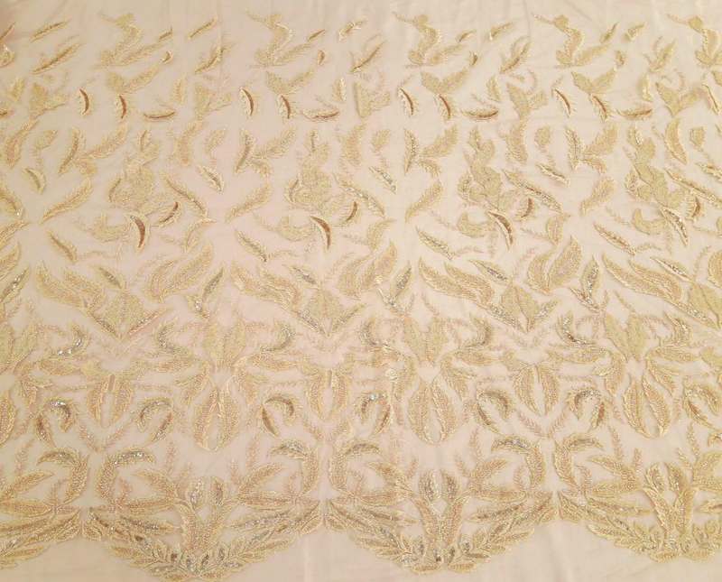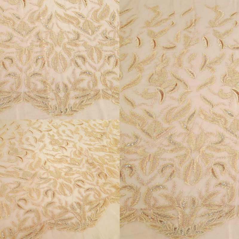 Тонке Мереживо кольором капучино з вишивкою гладдю, Бісіром, паєткою. Продається на метраж.