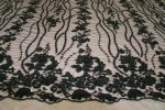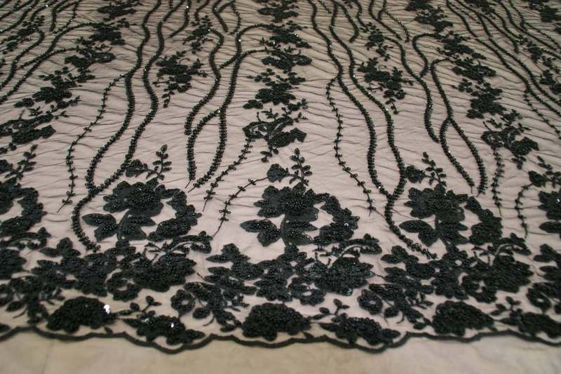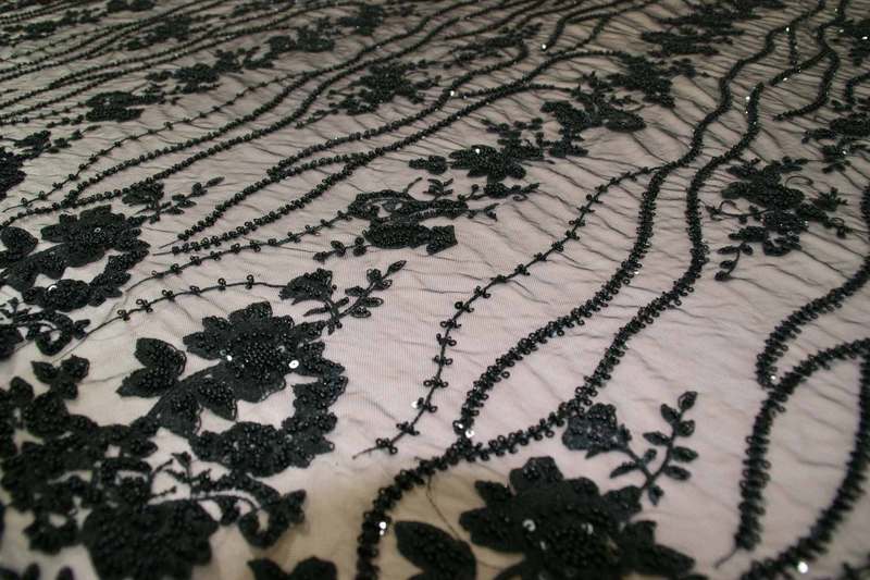Тонке Мереживо чорного кольору з вишивкою гладдю, Бісіром, паєткою. Продається на метраж.