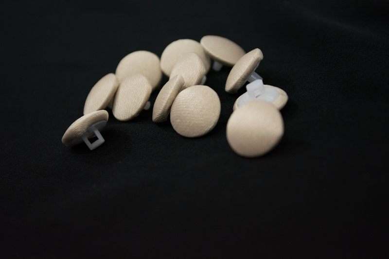 обтягнуті тканиною Ґудзики. Крім основної функції стануть також додатковим забарвленням. Відтінки, розміри та види кріплення в асортименті. Упаковка 100шт.