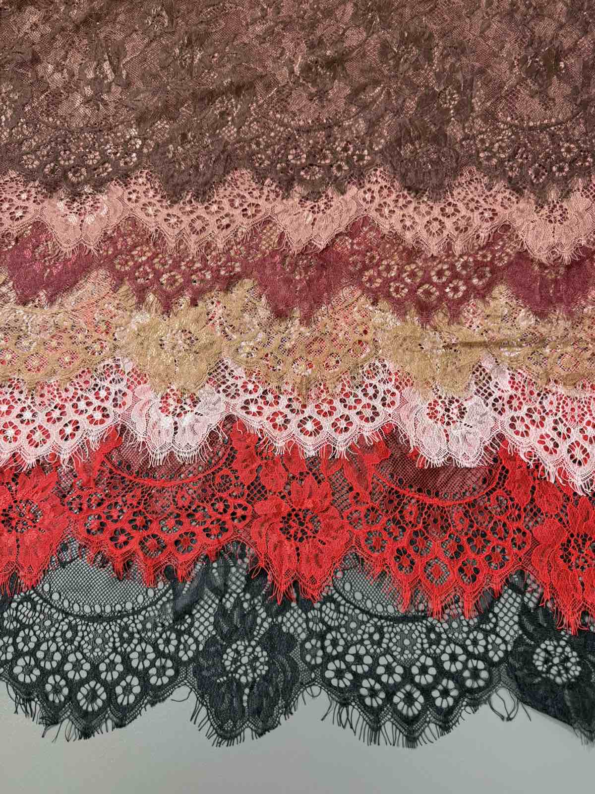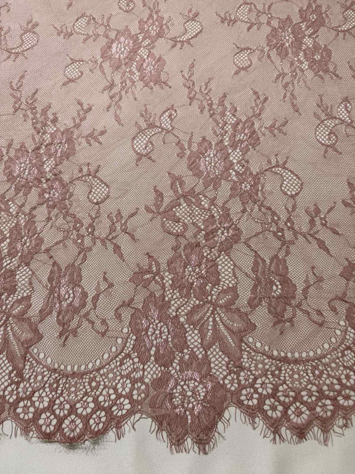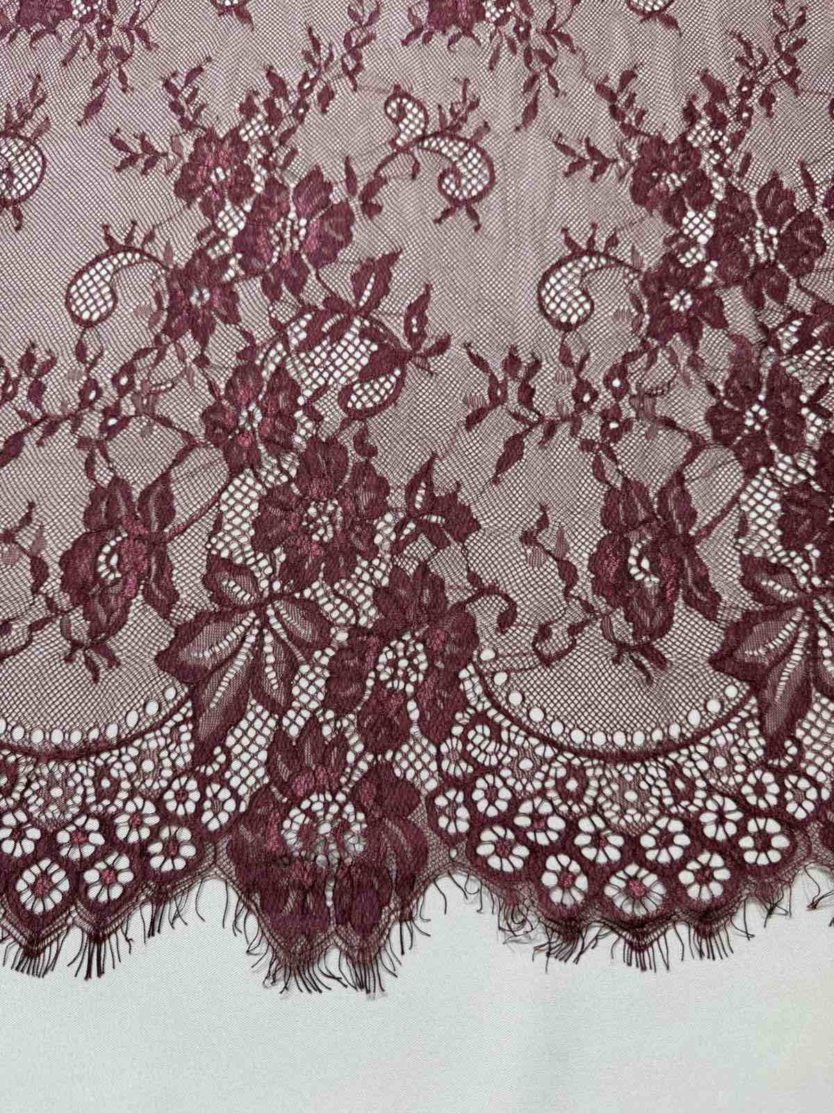 Це мереживо шантильї (Chantilly lace) — надзвичайно витончене та розкішне мереживо, відоме своєю тонкою сітчастою основою та делікатним візерунком з квітів і листя.