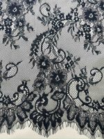 Головна Мереживо Мереживо для весільних суконь Шантильї Шантильї 0425,1.5m*3m, без корду ,чорне